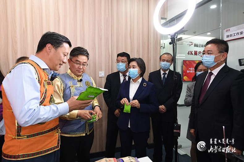 5月8日下午,內蒙古品牌形象宣介活動在呼和浩特啟動。自治區(qū)黨委副書記、自治區(qū)主席布小林,自治區(qū)黨委常委、自治區(qū)常務副主席馬學軍,自治區(qū)黨委常委、宣傳部部長白玉剛,自治區(qū)副主席鄭宏范參觀直播帶貨活動。