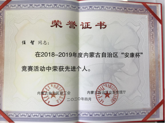 烏海市熱力有限責(zé)任公司任智同志榮獲2018-2019年度內(nèi)蒙古自治區(qū)“安康杯”競賽先進(jìn)個人