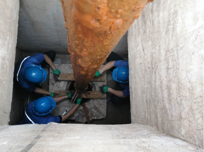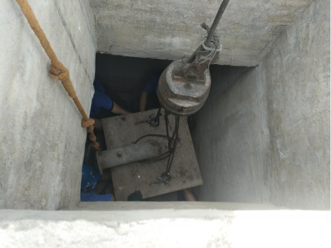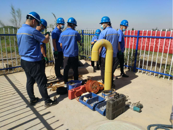 三、安全員對(duì)提下泵前各項(xiàng)工作進(jìn)行檢查,是否正確佩戴安全防護(hù)用品、是否斷電、對(duì)井室進(jìn)行先通風(fēng)、后對(duì)有害氣體進(jìn)行檢測(cè),檢查井室內(nèi)有無(wú)對(duì)工作有影響的雜物等,簽下井作業(yè)票,確保安全后,作業(yè)人員下井工作。