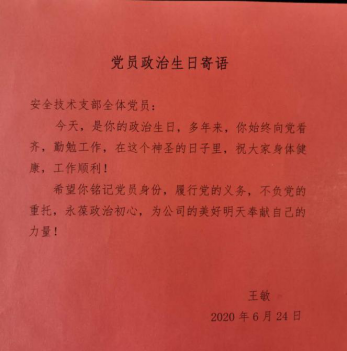 通過“過政治生日,憶入黨初心”活動(dòng),讓黨員常思“當(dāng)初入黨為什么、如今在黨做什么、今后為黨留什么”,引導(dǎo)黨員自覺加強(qiáng)黨性鍛煉,優(yōu)化工作作風(fēng),發(fā)揮模范作用,切實(shí)增強(qiáng)黨支部的向心力、凝聚力、戰(zhàn)斗力。