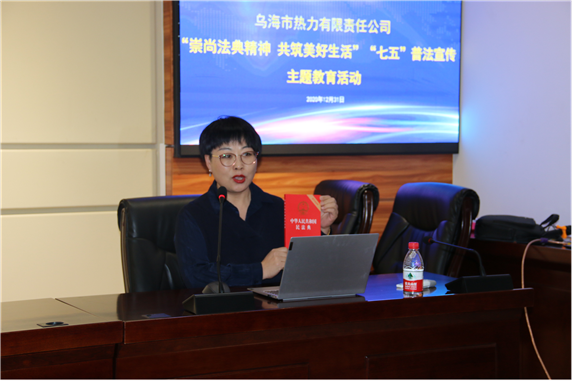 為了更好地普及法律知識,總結(jié)公司“七五”普法工作,進一步提升公司職工的法律意識,12月31日下午,烏海市熱力有限責任公司開展“崇尚法典精神 共筑美好生活”“七五”普法宣傳主題教育活動。熱力公司領(lǐng)導班子成員、環(huán)節(jié)干部、機關(guān)全體工作人員、窗口全體工作人員、分公司客服人員近100余人參加活動,活動特邀烏海市濟海侓師事務所楊海嵐律師做民法典重點內(nèi)容解讀。