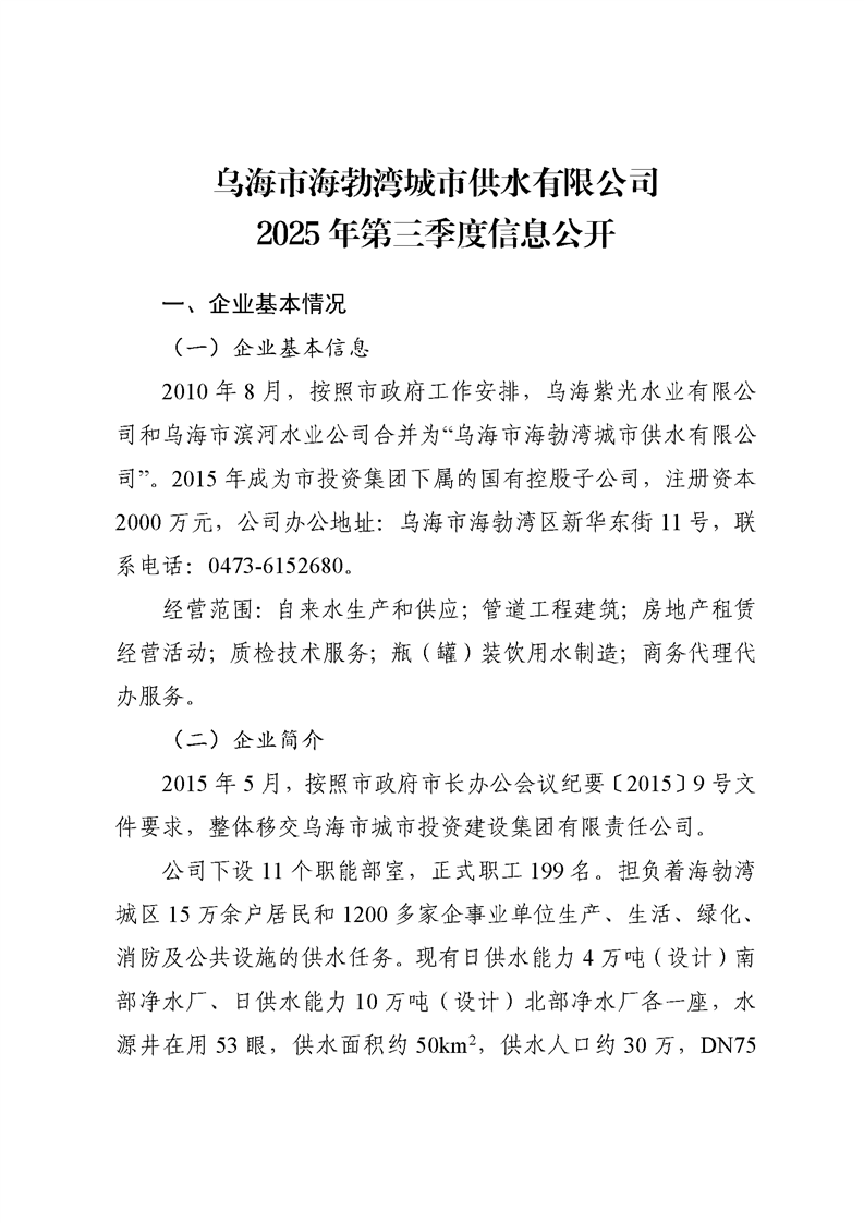 - 2025-07-28烏海市海勃灣城市供水有限公司2025年第二季度信息公開(kāi)