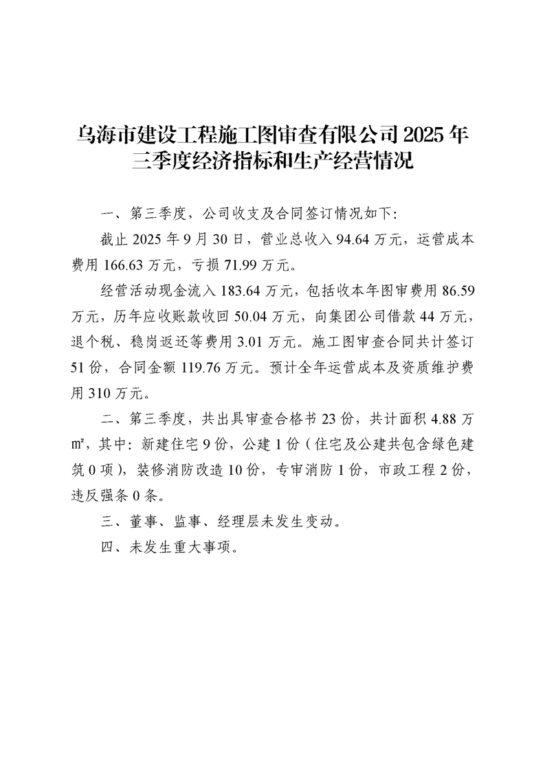 - 2024-10-15烏海市建設(shè)工程施工圖審查有限公司2024年第三季度信息公開