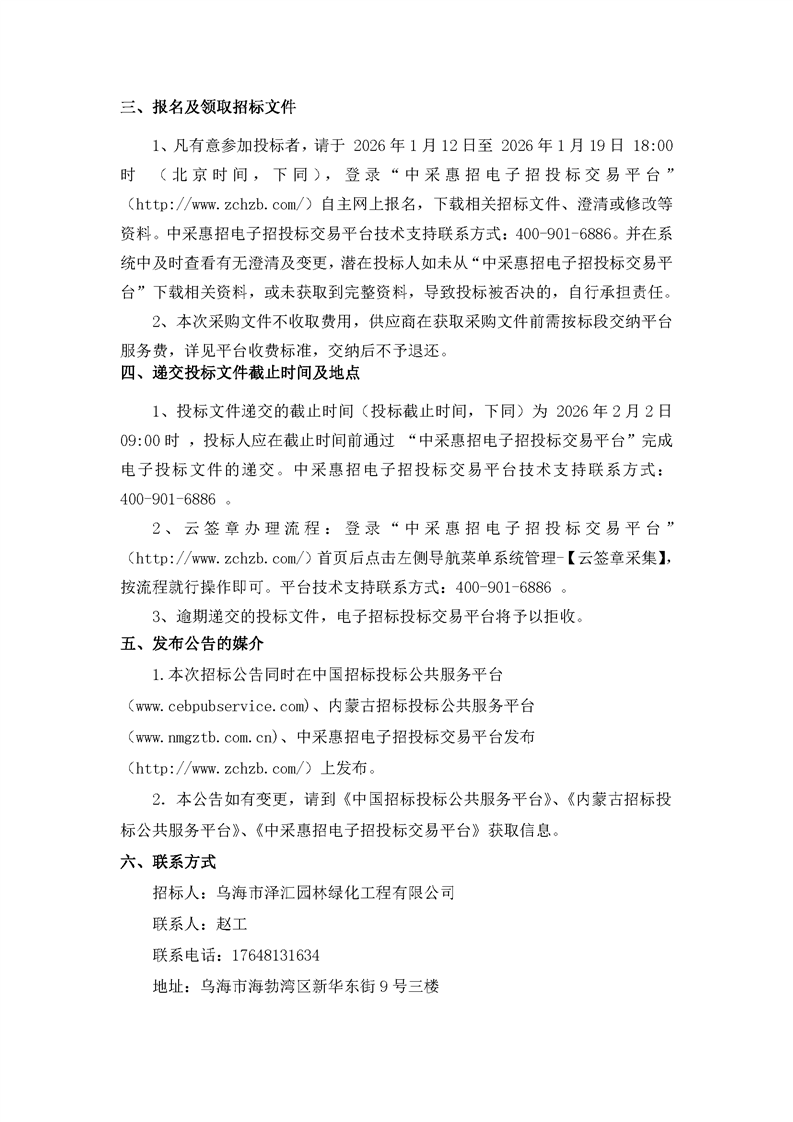 烏海市澤匯園林綠化工程有限公司濱河二期道路及附屬工程-綠化苗木采購(gòu)項(xiàng)目招標(biāo)公告