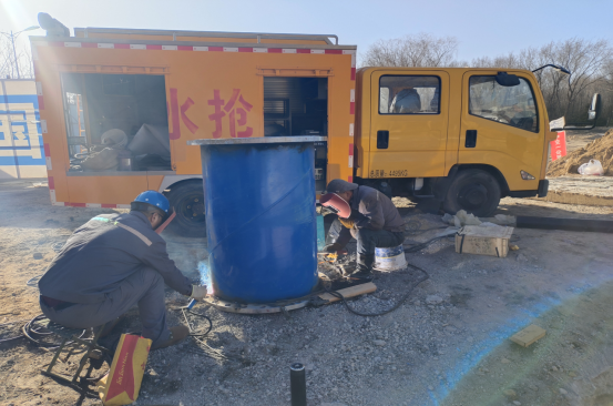 電焊組的師傅們頭戴面罩,手持焊槍,瞬間火花四濺,在黑暗中綻放出奪目光芒,熟練地進(jìn)行切割與焊接工作,其他人員則全力投入到拆卸工作中,他們齊心協(xié)力,將DN800蝶閥、DN800鑄鐵乙管、三通、伸縮器等部件逐一拆卸。盡管汗水濕透了衣衫,雙手被工具磨出了水泡,但沒有一個人喊累,所有人的目光都堅定地聚焦在搶修任務(wù)上。